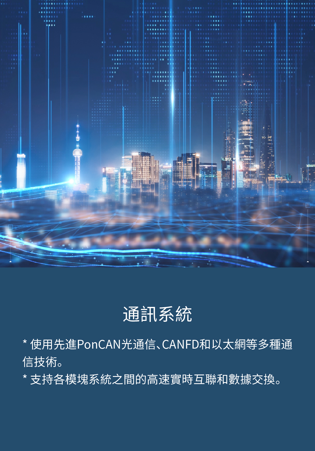 * 使用先進PonCAN光通信、CANFD和以太網等多種通信技術。